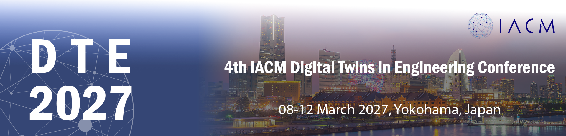 DTE 2027 (8-12 March 2027) will be held consecutively with CFC 2027 (IACM Computational Fluids Conference) 13-15 March 2027. Participants registering for both conferences will benefit from a reduced combined registration fee. Additional details will be announced on the website.